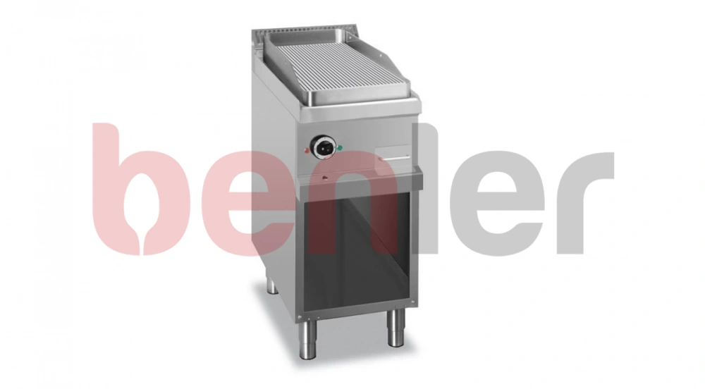 - Płyta o grubości 15 mm wykonana z miękkiej stali, z lekkim nachyleniem, co ułatwia czyszczenie i zbieranie tłuszczu do wyjmowanej szufl ady o maksymalnej pojemności 2 litrów -