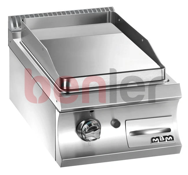 - Płyta o grubości 15 mm wykonana z miękkiej stali, z lekkim nachyleniem, co ułatwia czyszczenie i zbieranie tłuszczu do wyjmowanej szuflady o maksymalnej pojemności 2 litrów