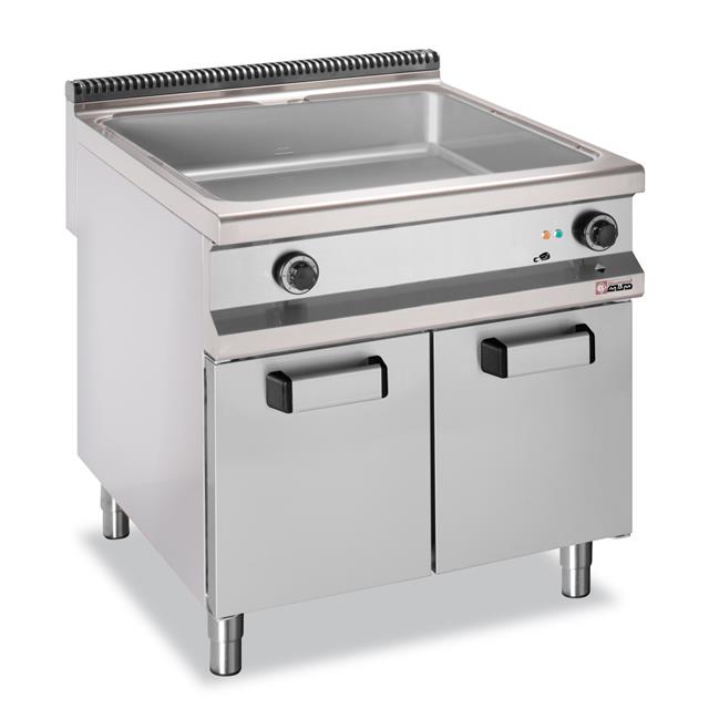 Wyposażenie: - Blat ze stali nierdzewnej AISI 304 o grubości 1 mm - Formowany zbiornik ze stali nierdzewnej AISI 304 ze spoiną ciągłą - Połowa modułu 1x GN 1/1, moduł pełen GN 2/1, maksymalnagłębokość GN-ów 150 mm (pojemniki GN należy zamawiać osobno)Ogrzewanie elektryczne za pomocą wzmocnionych elementówze stali nierdzewnej znajdujących się u dołu, grzałka pod zbiornikiem,temperatura regulowana za pomocą termostatu, lampka kontrolna.- Wymiary zbiornika 630x690x(H)160 mm - Pojemność zbiornika 8x GN 1/3 (H) max 150 mm