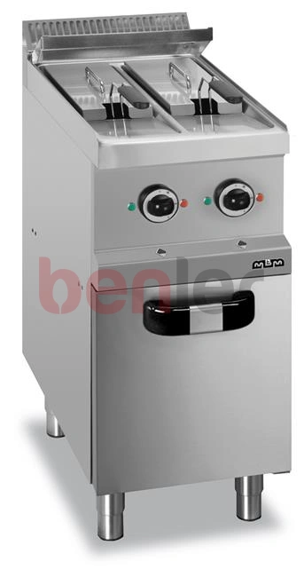 - Blat ze stali nierdzewnej AISI 304 18/10 o grubości 1 mm- Komory ze stali nierdzewnej głęboko tłoczonej AISI 304 o szerokim promieniu, umożliwiającym łatwe czyszczenie i maksymalną higienę- Ciągłe spoiny komór (bez szczotkowania),co zapewnia wytrzymałe łączenie- Wszystkie modele wyposażone w termostat bezpieczeństwa- Duża „strefa zimna“, pozwalająca utrzymać niezmienioną jakość oleju przez dłuższy czas i zapewniająca łatwiejsze usuwanie pozostałości po smażeniu- Wymiary zbiornika: 280x340x(H)240 mm- Nagrzewanie elektryczne za pomocą elementu grzejnego ze stali nierdzewnej AISI 304 znajdującego się wewnątrz urządzenia, obracanego o 90°C , co umożliwia dokładne mycie komory frytkownicy - Szafka zamykana drzwiami skrzydłowymi- Kulowy zawór spustowy oraz pojemnik na olej, po 1 sztuce na komorę- wymiary zbiornika: 2x 140x340x(H)240 mm