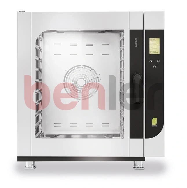 - Wytrzymała, solidna konstrukcja to cecha wyróżniająca piece CHEFMATE - Kompaktowe wymiary ułatwiające transport, wniesienie oraz instalację w każdej kuchni - Ulepszona izolacja dzięki zastosowaniu nowego izolatora i podwójnej szyby wewnętrznej ogranicza straty ciepła oraz energii elektrycznej a co za tym idzie także wpływa korzystnie na ochronę środowiska naturalnego - Solidna konstrukcja komory pieczenia ze stali AISI 304 z formowanym dnem i sklepieniem, uniemożliwiająca odkształcanie wpływa na długoletnie korzystanie z pieca. - Zaokrąglone narożniki ułatwiające mycie wpływają na łatwość w utrzymaniu wysokich standardów higienicznych. - Klasa ochrony IPX5 chroniąca wszystkie wewnętrzne części przed strumieniem wody zabezpiecza piec przed przypadkowym zalaniem elektroniki, czyli wpływa także na obniżenie kosztów ewentualnych napraw i wymiany części - Dostęp do elektronicznych modułów od przedniej części pieca - Łatwa i szybka instalacja opcji dodatkowych - Konfiguracja języka podczas instalacji - Zrozumiałe komunikaty o błędach - Pojemność: 10x GN 1/1 lub 10x 600x400 mm - Wytwarzanie pary - bezpośredni natrysk na grzałki - Odległość między prowadnicami: 70 mm - Wentylator z autorewersem - 6 prędkości - Tłoczona komora z zaokrąglonymi narożnikami ze stali AISI 304 - Wymiary komory: 630x440x(H)710 mm - Podstawa pod piec model 224526, o wymiarach 740x610x(H)700 mm - Wielojęzyczny, dotykowy panel sterujący - Zakres temp. gorącego powietrza: +40 do +250 st. C - Zakres temp. pary: +40 do +100 st. C - Zakres temp. cyklu mieszanego: +40 do +250 st. C - Cykl regeneracji, cykl utrzymywania temperatury (holding) - Gotowanie w cyklu DELTA T - Gotowanie wielopoziomowe - Automatyczne, wstępne rozgrzewanie komory pieca - o +20 st. C - Automatyczne schładzanie komory pieca - Przyłącze wody: 3/4'' - Wymagane ciśnienie wody: 2,5 - 5 bar - Możliwość podłączenia sondy (należy zamawiać osobno) - Możliwość programowania - do 100 programów, po 5 kroków każdy - Halogenowe oświetlenie komory - Port USB - Automatyczne sterowanie kominkiem wentylacyjnym - System autodiagnostyczny z meldowaniem błędów - Drzwi z podwójną, hartowaną szybą - Regulowane stalowe nóżki