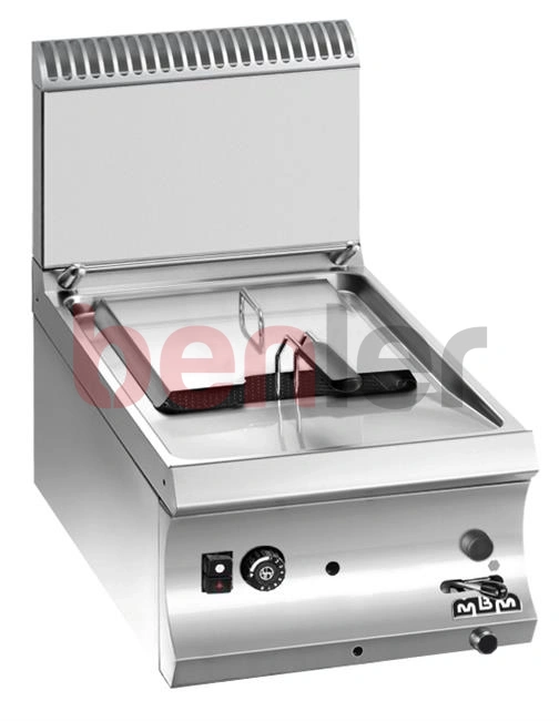Wyposażenie: - Blat ze stali nierdzewnej AISI 304 18/10 o grubości 1,5 mm - Komory ze stali nierdzewnej głęboko tłoczonej AISI 304 o szerokim promieniu, umożliwiającym łatwe czyszczenie i maksymalną higienę - Ciągłe spoiny komór (bez szczotkowania),co zapewnia wytrzymałe łączenie - Wszystkie modele wyposażone w termostat bezpieczeństwa - Duża „strefa zimna“, pozwalająca utrzymać niezmienioną jakość oleju przez dłuższy czas i zapewniająca łatwiejsze usuwanie pozostałości po smażeniu - Panel sterowania z wklęsłym profi lem skutecznie zabezpiecza pokrętła przed przypadkowym uszkodzeniem - Ergonomiczne i odporne na wysoką temperaturę pokrętła Modele gazowe: - Palnik gazowy z płomieniem poziomym, regulacją temperatury za pomocą termostatu w zakresie od 90° do 190°C, z zaworem bezpieczeństwa i termoparą - Piezoelektryczny zapalacz