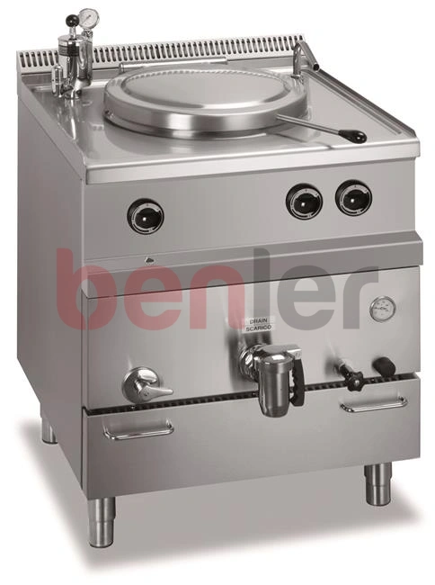 – Grzanie pośrednie z wewnętrznym płaszczem ze stali nierdzewnej AISI 304, zawór bezpieczeństwa z ciśnieniomierzem