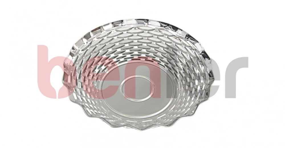 Prezentujemy kosz do pieczywa, który jest wykonany ze stali nierdzewnej. Zastosowanie tego materiału sprawia, że kosz jest bardzo solidny oraz wytrzymały na uszkodzenia mechaniczne. Kosz posiada elegancki wzór dekoracyjny, dzięki czemu pieczywo jest doskonale zaprezentowane. Dużym udogodnieniem jest fakt, że kosz na pieczywo stalowy możesz myć w zmywarce.