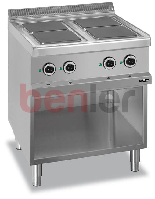 Kuchnia elektryczna 4-płytowa na podstawie z trzech stron zamkniętej, z kwadratowymi płytami linia 700 Hendi MG7E4A77Q