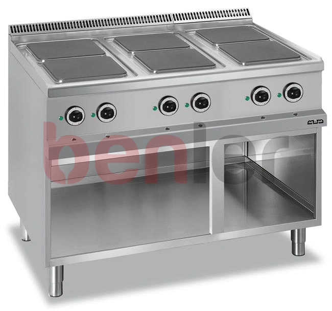 Kuchnia elektryczna 6-płytowa na podstawie z trzech stron zamkniętej, z kwadratowymi płytami linia 700 Hendi MG7E6A77Q