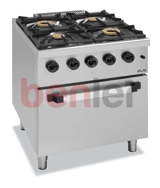 • Blat ze stali nierdzewnej AISI 304• Zdejmowane palniki z chromowanego żeliwa i z mosiężnymi koronami, ze samostabilizującym się płomieniem• Wszystkie palniki z płomieniem kontrolnym i termoparą zapewniające bezpieczne gotowanie• Palniki o mocy 6 kW dodatkowo z podwójnym pierścieniem płomienia• Piekarnik ze stali nierdzewnej i emaliowanym dnem dostosowany do pojemników GN 2/1• Drzwi piekarnika ze stali, dwuwarstwowe, izolowane• Piekarnik gazowy z termostatem regulującym temperaturę oraz z zaworem bezpieczeństwa i piezzoelektrycznym zapalnikiem• Elektryczny piekarnik z termostatem i stalowymi grzałkami na górze oraz dole, regulowanymi oddzielnie• Konstrukcja rusztów umożliwiająca stosowanie naczyń kuchennych już od śr.110 mm• Maksymalna odległość pomiędzy palnikami pozwalająca na ustawienie dużych garnków śr.400 mm• Regulowana wysokość stalowych nóżek w zakresie od 150 do 200 mm• Kominek ze stali nierdzewnej• Blat tłoczony z jednego arkusza stali gwarantujący szczelność, dodatkowo z zaokrąglonymi krawędziami ułatwiającymi czyszczenie• Konstrukcja palnika uniemożliwiająca dostanie się wody do jego środka- Pojedyncze ruszty żeliwne w rozmiarze dostosowanym do mycia w zmywarce