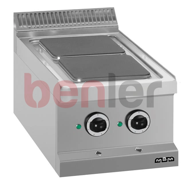 – Blat ze stali nierdzewnej AISI 304 18/10 o grubości 1 mm – Szybko nagrzewające się żeliwne płyty grzejne z zabezpieczeniem przed przegrzaniem (2x 220x220 mm) – Elementy grzejne o mocy 2,6 kW z 7-pozycyjnym termostatem zapewniającym optymalne sterowanie mocą – Wodoszczelne mocowanie płyt grzejnych do blatu kuchni – Zaokrąglone narożniki oraz formowane wgłębienia pozwalają na gromadzenie się cieczy, zapobiegają jej wypływowi i ułatwiają mycie – Lampki kontrolne wskazujące działanie każdej płyty