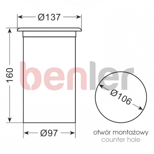 Organizer na słomki nierdzewny do montażu w blacie, okrągły 106 mm | DZ-L320C