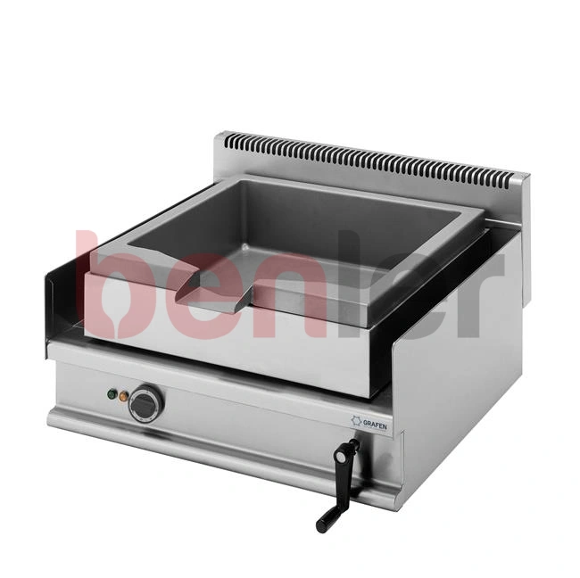 - Dostępna z wanną o pojemności 30 l - Wanna wykonana ze stali nierdzewnej AISI 304 ze wzmocnionym dnem - Ślimakowy mechanizm unoszenia wanny przy pomocy korbki - Wygodna wylewka do opróżniania - Podgrzewanie dzięki grzałce elektrycznej umieszczonej pod dnem wanny - Zakres temperatury: od +50°C do +300°C - Temperatura regulowana termostatem - Obudowa urządzenia ze stali nierdzewnej 18/10 - Ergonomiczne i odporne na wysoką temperaturę pokrętło - Boczne ranty umożliwiające spięcie sąsiednich elementów listwą - Lampka kontrolna załączonego grzania