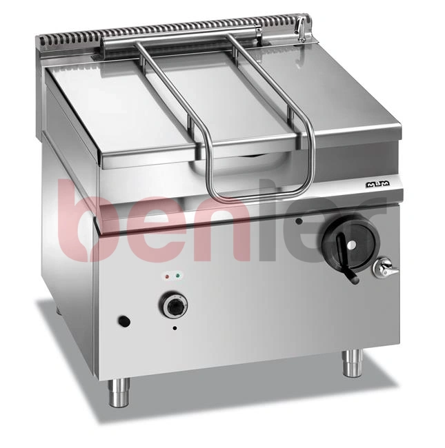 Stal nierdzewna AISI 304, 18/10Wykończenie Scotch BriteWanna ze stali nierdzewnej AISI 304 18/10 o grubości 10 mmRęczne przechylanie za pomocą korbkiWanna o zaokrąglonych narożnikach ułatwiających mycieProfilowana część przednia ułatwiająca opróżnianie i myciePokrywa ze stali nierdzewnej zawieszona na solidnych zawiasach ze stali nierdzewnej AISI 304, z ergonomicznym uchwytem z przoduKurek doprowadzający wodę umieszczony z przodu urządzeniaW celu podniesienia bezpieczeństwa pracy, ogrzewanie wanny wyłącza się automatycznie podczas uniesienia wannyOgrzewanie gazowe za pomocą palnika ze stali nierdzewnej, zawór gazowy z termoparą i regulacją temperatury za pomocą termostatu (75 – 300°C). Palniki gazowe umieszczone pod wanną, tworzące 7-rzędowy płomień, co zapewnia równomierne rozprowadzenie ciepłaWymiary wanny: 790x690x(H)200 mm