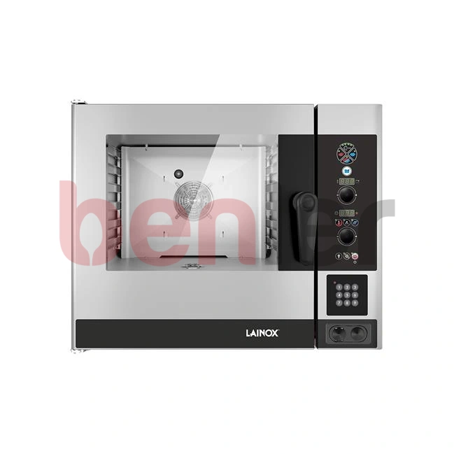 Budowa: - Idealnie gładka, szczelna komora - Drzwi z podwójną hartowaną szybą, komorą powietrzną i wewnętrzną szybą odbijającą ciepło zmniejszają emisję ciepła w stronę operatora i podnoszą wydajność urządzenia - Składana szyba wewnętrzna umożliwiająca łatwe czyszczenie - Regulowany zawias zapewniający optymalne uszczelnienie - Zdejmowany deflektor, ułatwiający dostęp do komory wentylatora i jej czyszczenie - Współczynnik szczelności IPX5 Tryby gotowania: - Tryb automatyczny, ponad 90 zapisanych programów, łącznie z programami odgrzewania na talerzu lub w pojemniku - Możliwość programowania i zapisania 99 programów pieczenia (maksymalnie po 4 cykle) - Gotowanie ręczne w trzech trybach: tryb konwekcyjny w zakresie od 30°C do 300°C, tryb parowy w zakresie od 30°C do 130°C, tryb konwekcyjno-parowy w zakresie od 30°C do 300°C - Gotowanie ręczne w 4 cyklach w sekwencji automatycznej dla różnych trybów gotowania, utrzymania temperatury oraz sterowania wylotem pary - Pieczenie z sondą (ustawienie i kontrola temperatury wewnątrz potrawy) (opcja) - AUTOCLIMA® – automatyczny system pomiaru i kontroli wilgotności w komorze pieca - FAST-DRY® – system szybkiego osuszania komory - Możliwość wyboru 9 najczęściej używanych programów „press and go” (opcja) Wyposażenie: - Wyświetlacz alfanumeryczny o wysokiej rozdzielczości - Przycisk sterowania 4 cyklami pieczenia z wyświetlaczem LED - Przycisk dostępu do zapisanych programów pieczenia i ich zapisywania - Pokrętło SCROLLER PLUS z funkcją wyboru i zatwierdzania opcji - Nagrzewanie ręczne - Bezpośredni natrysk - 2 ruszty ze stali nierdzewnej GN 1/1 Sterowanie: - Autodiagnostyka przed rozpoczęciem użytkowania urządzenia, opisowe i dźwiękowe sygnalizowanie nieprawidłowego działania - System mycia ręcznego z wyjmowanym prysznicem - Autorewers (automatyczna zmiana kierunku pracy wentylatora) pozwalająca na równomierne opiekanie - Automatyczne, równoległe sterowanie temperaturą w komorze i wnętrzu potrawy, system DELTA T - Automatycznie regulowane skraplanie pary - Nawilżanie ręczne - Oświetlenie halogenowe - Sterowanie temperaturą wewnątrz produktu za pomocą sondy czteropunktowej - Złącze USB do pobierania danych HACCP, aktualizacji oprogramowania, wgrywania/pobierania programów pieczenia - SERVICE – program służący do: kontroli działania płyty elektronicznej i wyświetlacza temperatury sondy. Zegar urządzenia połączony z podstawowymi funkcjami, umożliwiający przeprowadzenie programowanej konserwacji - ECOSPEED – dzięki rozpoznaniu ilości i rodzaju przygotowywanego produktu, urządzenie Naboo optymalizuje pobór energii, steruje nim i utrzymuje odpowiednią temperaturę pieczenia, nie dopuszczając do zmian - ECOVAPOR – system umożliwia znaczące zmniejszenie zużycia wody i energii dzięki funkcji automatycznego sterowania nasyceniem pary w komorze pieczenia - GREEN FINE TUNING – nowy system modulacji palnika i wydajny wymiennik ograniczające utratę mocy i zmniejszające szkodliwe emisje WYPOSAŻENIE STANDARDOWE - Multifunkcyjna klawiatura - Wbudowany i wyjmowany prysznic ręczny z zaworem - 2 ruszty ze stali nierdzewnej GN 1/1 - Sonda wielopunktowa o3 mm
