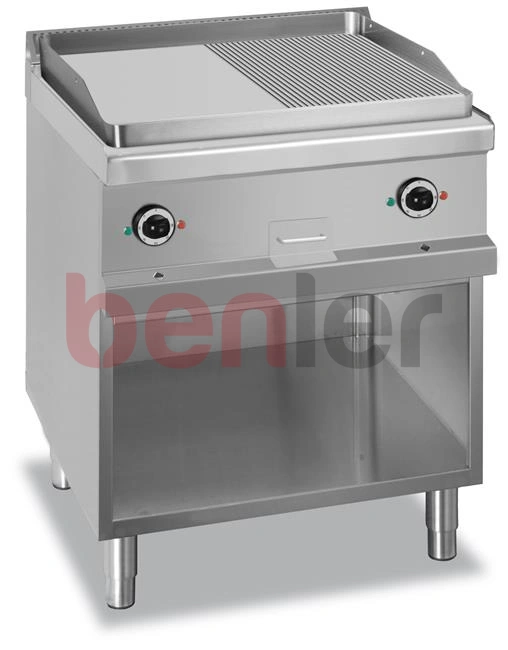 Płyta grillowa na podstawie z trzech stron zamkniętej - elektryczna, 1/2 gładka +1/2 ryflowana, linia 700