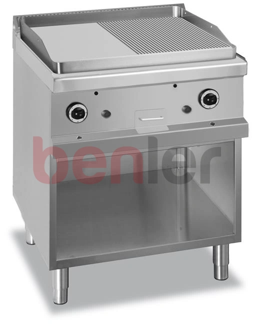 Płyta grillowa na podstawie z trzech stron zamknietej - gazowa, 1/2 gładka + 1/2 ryflowana, chromowana linia 700 Hendi MG7GFTA777LRC