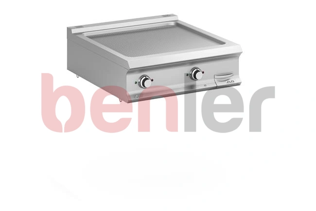 - Płyta o grubości 15 mm wykonana z miękkiej stali, z lekkim nachyleniem, co ułatwia mycie i zbieranie tłuszczu do wyjmowanej szuflady o maksymalnej pojemności 2 litrów