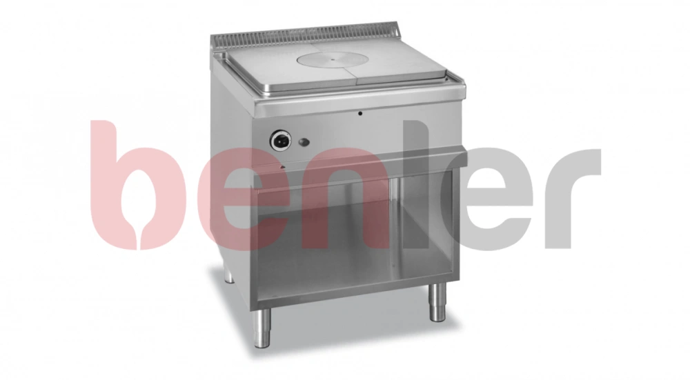 Wyposażenie: - Blat ze stali nierdzewnej AISI 304 (18/10) o grubości 1,5 mm - Panel sterowania z wklęsłym profi lem skutecznie zabezpieczający pokrętła przed przypadkowym uszkodzeniem - Ergonomiczne i odporne na wysoką temperaturę pokrętła Wersja gazowa: - Płyta grzewcza dużej mocy o powierzchni 40 dm2 wykonana z żeliwa – grubość 10 mm - Temperatura 500°C w centrum płyty, malejąca w kierunku krawędzi do ok. 200°C - Wyjmowany centralny pierścień w wersjach gazowych - Nierdzewny palnik umieszczony pod centralnym pierścieniem - Piezoelektryczny zapłon oraz termostat do regulacji temperatury - Piekarnik gazowy GN 2/1 statyczny z palnikiem o mocy 6 kW, sterowany za pomocą termostatu oraz ze samostabilizującym się płomieniem Konserwacja: - Zaokrąglone narożniki oraz formowane wgłębienia pozwalają na gromadzenie się cieczy, zapobiegają jej wypływowi i ułatwiają czyszczenie