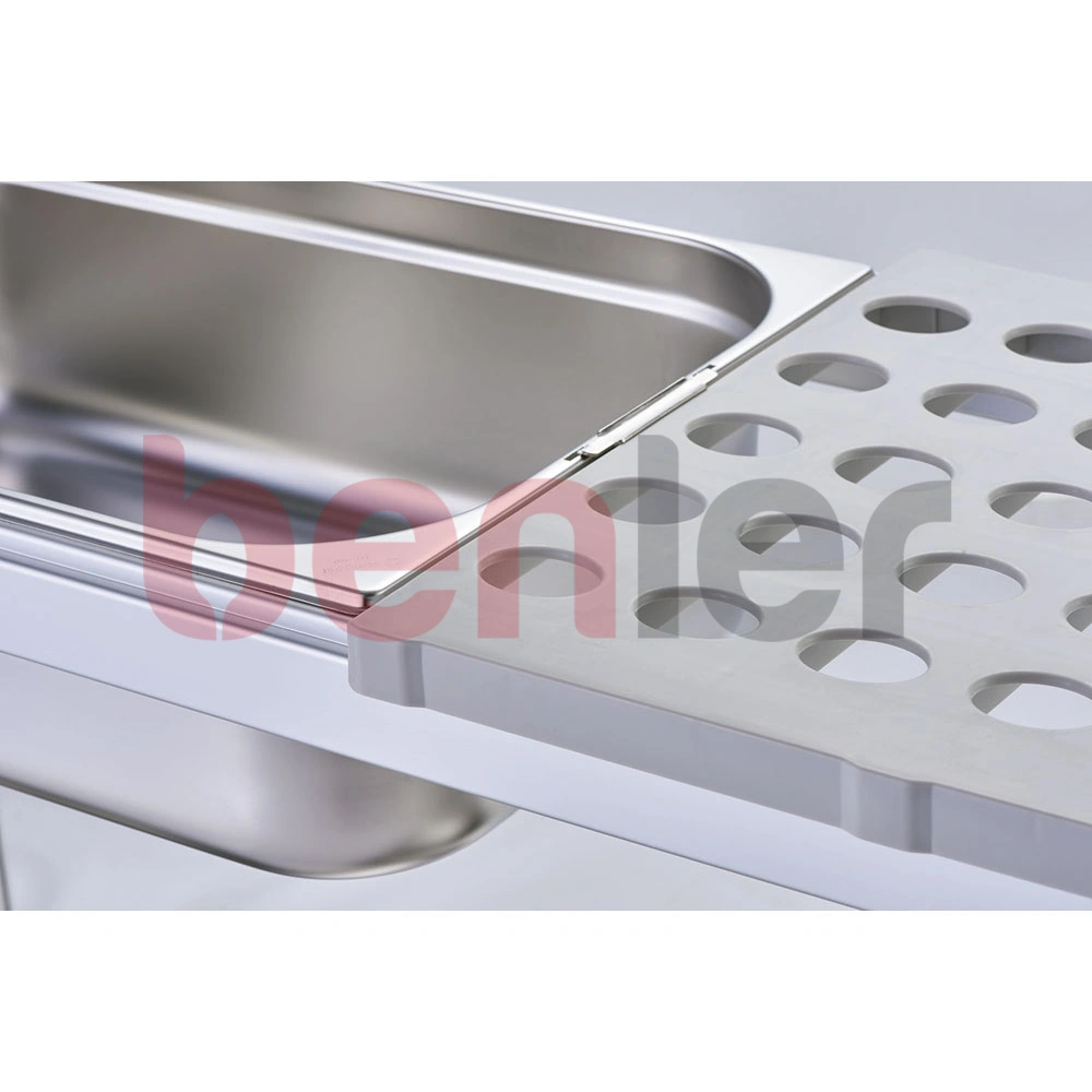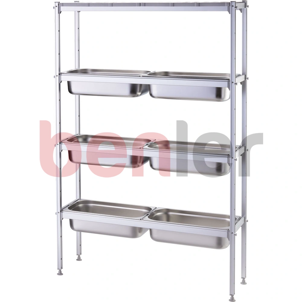 - 4 poziomy półek, 8 modułów półek zamiennych z pojemnikem GN1/1