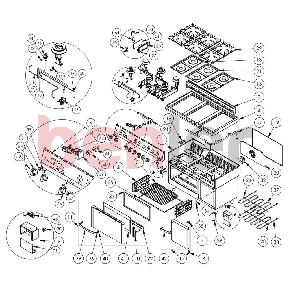 Kuchnia gazowa z piekarnikiem elektrycznym, 4-palnikowa, P 20.5+7 kW, U G20 Stalgast 9716110
