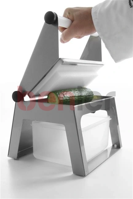 - W zestawie: zespół noży tnących na plastry 5 i 10mm ze stali nierdzewnej oraz pojemnik z pokrywką z polipropylenu