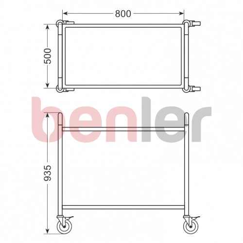 Wózek kelnerski 800 x 500 mm z dwoma półkami
