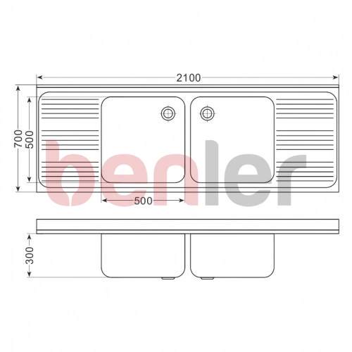 Wymiary komory 2 komory 500 x 500 x 300 mm